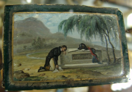 Ein Soldat weint am Grab von Napoleon Miniatur von 1820 Hier